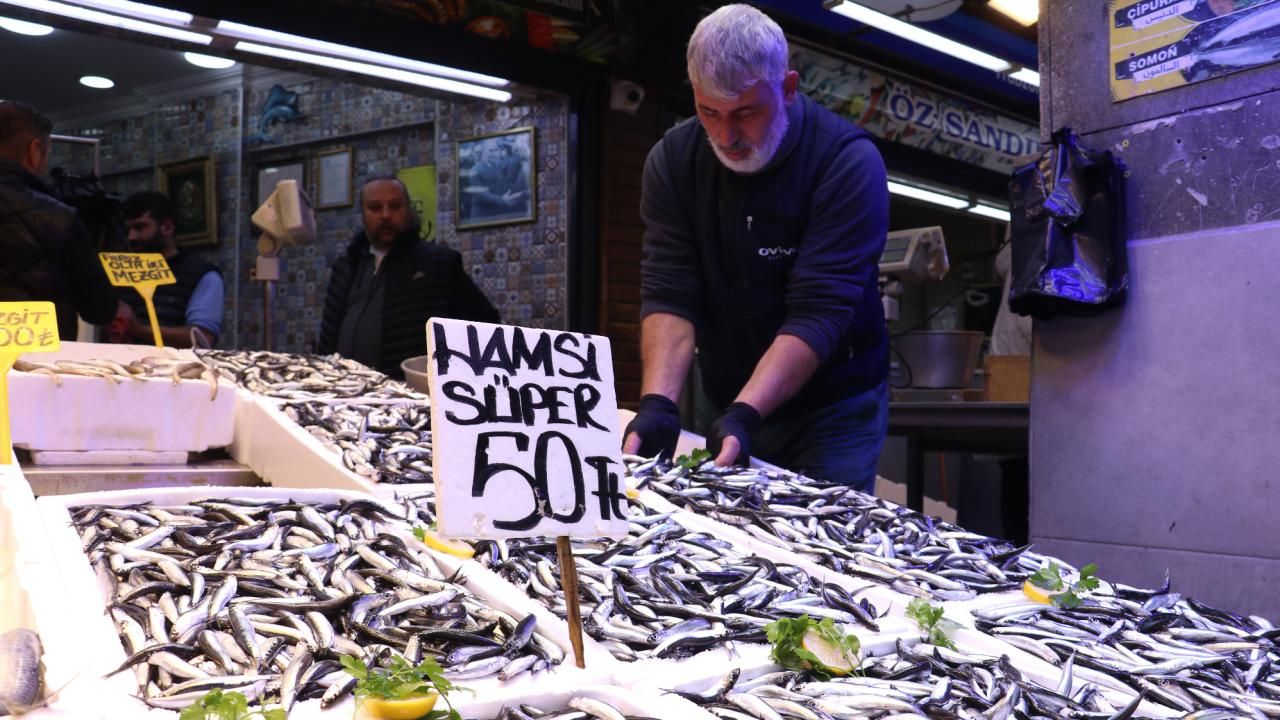 “Hamsi bu sene bol. İncesi karışığı yok, çok güzel. Vatandaş alıyor ve 50 lira. Bundan ucuzu yok.”