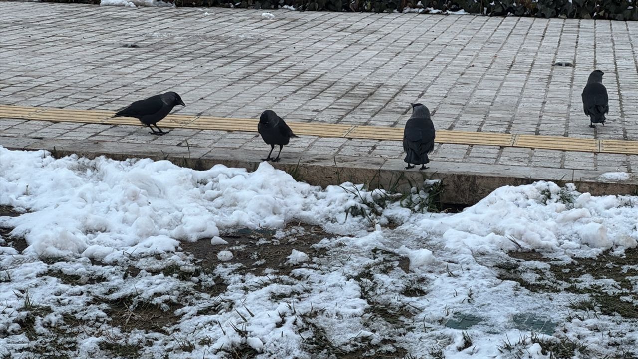 Hava sıcaklığının gece sıfırın altında 4 dereceye düştüğü kentte, soğuk hava nedeniyle sokak hayvanları karla kaplı alanlarda yiyecek bulmakta zorlandı.