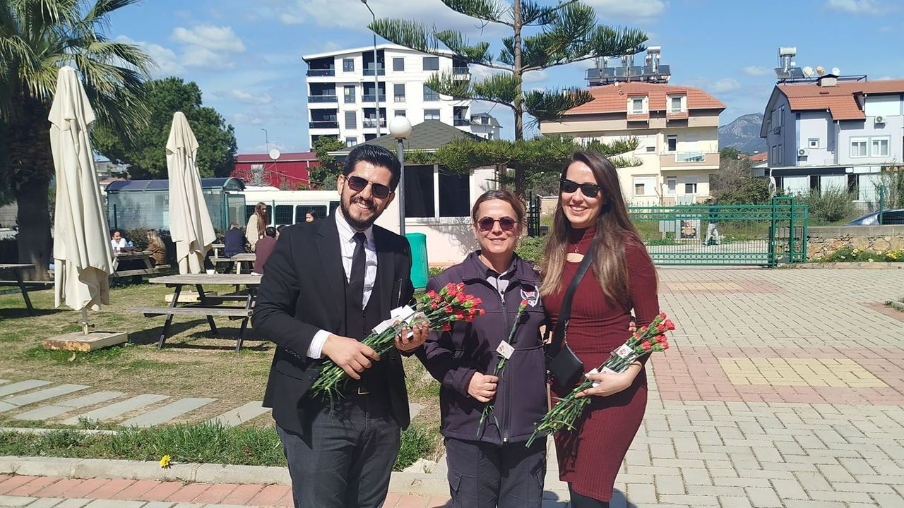 Şubeden yapılan açıklamaya göre, etkinlikte, Alanya Alaaddin Keykubat Üniversitesi çalışanlarına karanfil dağıtıldı.