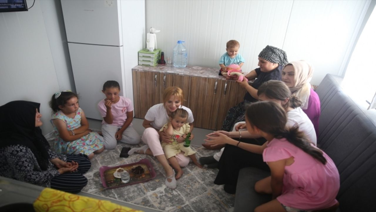 KAHRAMANMARAŞ (AA) GÖKHAN ÇALI/ÖMER FARUK SALMAN İletişim Başkanlığı koordinesinde 6 Şubat'ta meydana gelen depremlerin merkez üssü Kahramanmaraş'a gelen şarkıcı Züleyha Ortak ve manken Deniz Akkaya, konteyner kentte kalan depremzedelerle buluştu, moral verdi.