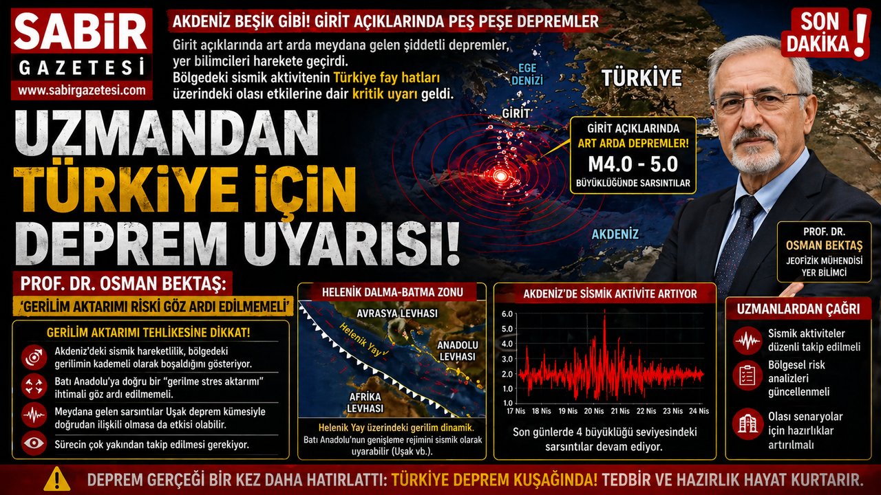 Yer bilimci Prof. Dr. Osman Bektaş, bölgede yaşanan sarsıntıların Türkiye’deki fay hatları üzerinde dolaylı etkiler oluşturabileceğine dikkat çekti. Özellikle Helenik Dalma-Batma Zonu üzerindeki hareketliliğin yakından izlenmesi gerektiği vurgulandı.
