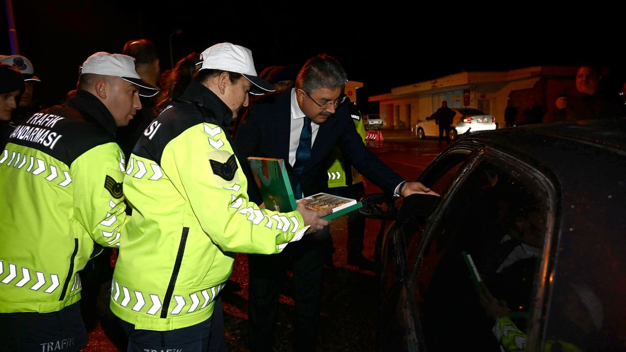 Trafik kontrolünde durdurulan araçlardaki vatandaşlarla da yakından ilgilenen Vali Yılmaz, sürücülere ve yolculara güvenli yolculuklar dileyerek, trafik kurallarına uyulmasının önemine dikkat çekti.