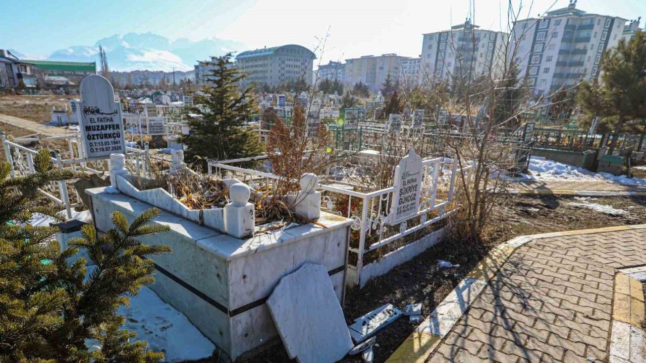 Önceki gece mezarlıkta 30’a yakın mezar tahrip edilmişti. Yine dün gece kimliği belirsiz kişi veya kişiler, onlarca mezarın taşlarını kırarak tahrip etti.