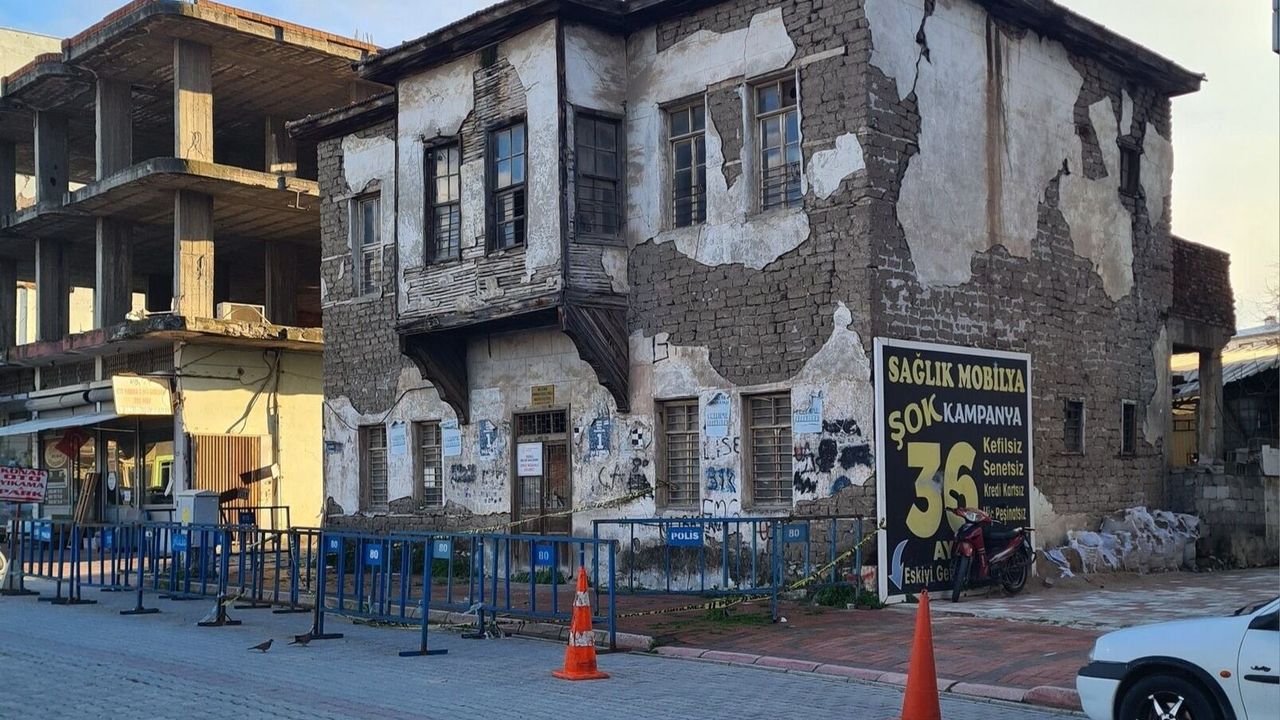 Güvenlik Çemberindeki Hüzün: Binanın çevresine çekilen polis bariyerleri ve emniyet şeritleri, tarihi yapının şu anki metruk ve tehlike arz eden durumunu simgeliyor. Bu şeritler aynı zamanda kentin hafızasına çekilen bir set gibi duruyor.