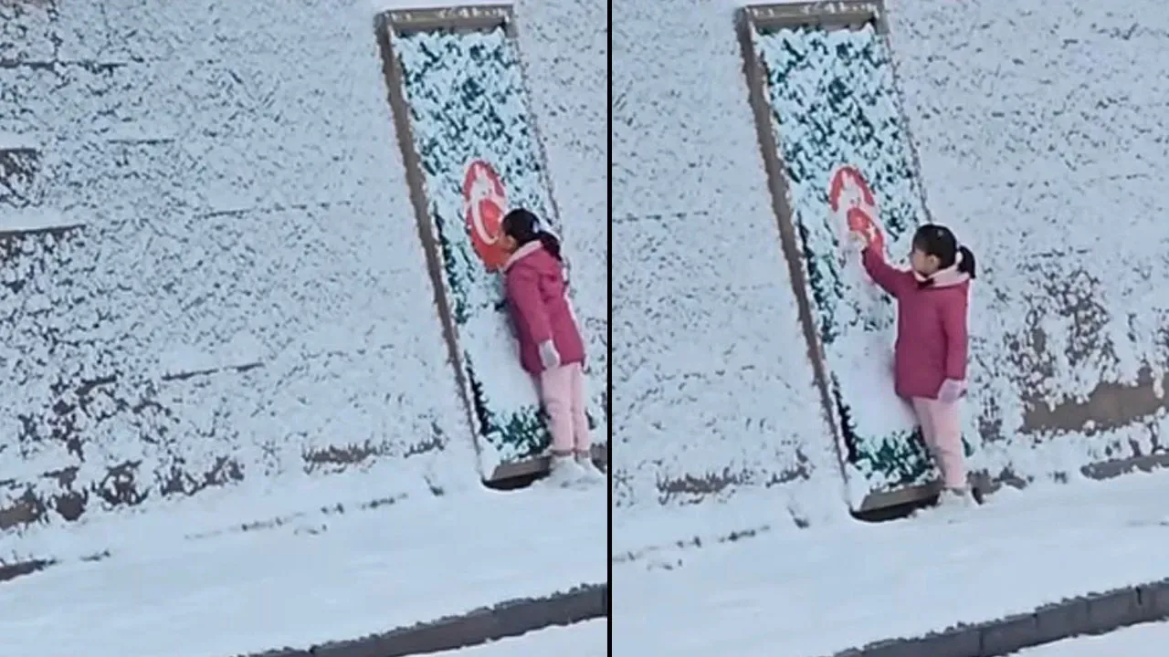 Küçük Zeynep’in, elleriyle bayrak motifinin üzerindeki karı temizleyip ardından öpmesi, bölgede çalışma yapan belediyeye ait kar küreme ekipleri tarafından görüntülendi. O anlar, izleyenleri hem duygulandırdı hem de gururlandırdı.